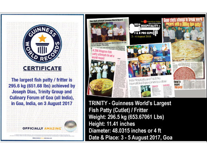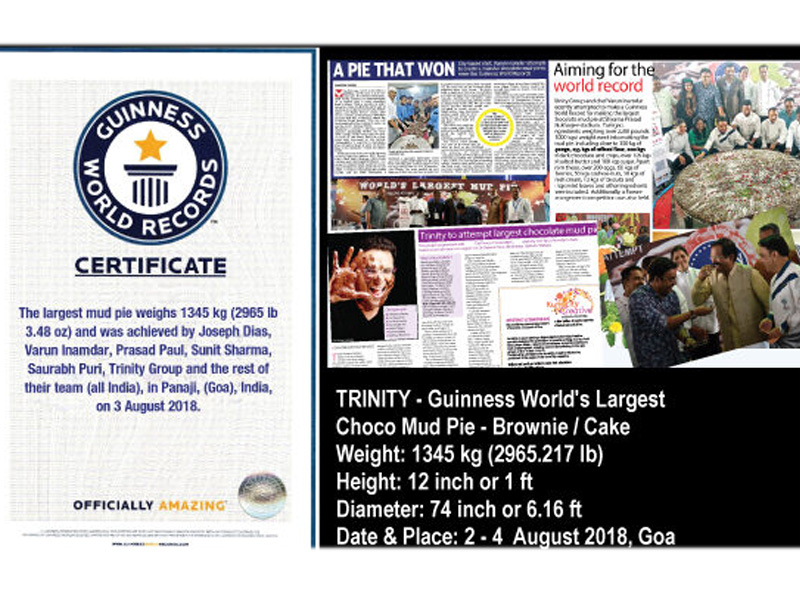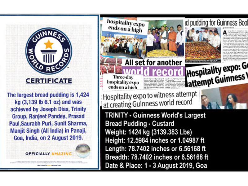 The Trinity Group have been flagship market-leaders in the field of promoting trade & technology. However, here is an interesting sidelight about The Trinity Group – it is also known in the country and overseas for being holders of 3 Guinness World Records!!! After the first in 2017 (World’s Largest Fish Patty – 296.5 kg) and second in 2018 (World’s Largest Choco Mud Pie – 1345 kg), a hat-trick was achieved in 2019 with the (World Largest Bread Pudding – 1424 kgs) – all as part of their corporate social responsibility. Hundreds of kilos of food prepared by a huge team of 5 Star Executive Chefs & Hotel Management Students in the 3 GWRs was distributed free to the poor, hungry, orphans and senior citizen homes by Goan NGOs, who assisted. Mr. Joseph Dias, Chairman of the group speaking to GWR authorities said – “ The feeling of great accomplishment is further, heightened since it comes with the GWR credibility and the satisfaction of being able to drive a team towards a goal. The team is grateful that a high level of professionalism, dedication and the spirit of doing public good is globally recognized. The feeling of satisfaction that months of hard work was successfully brought to fruition and the feeling of deep honour to be able to put India and Goa on the world map is exhilarating ”.